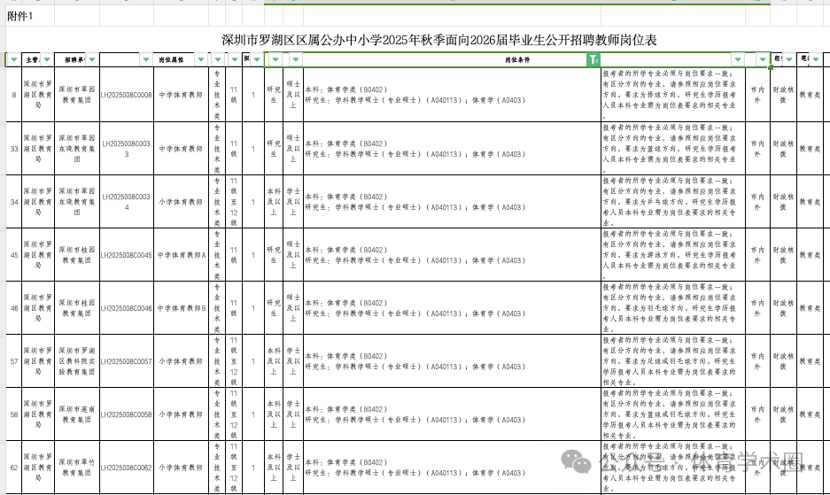 附件:1.深圳市罗湖区区属公办中小学2025年秋季面向2026届毕业生公开招聘教师岗位表