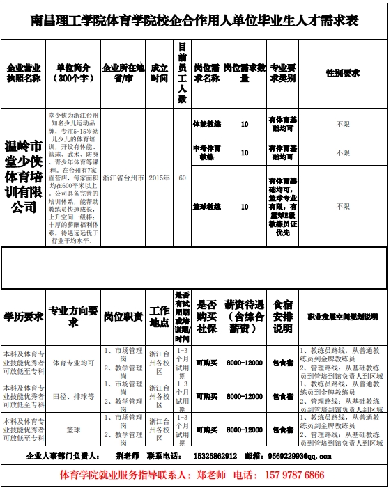 【体培招聘】浙江温岭市堂少侠体育培训有限公司