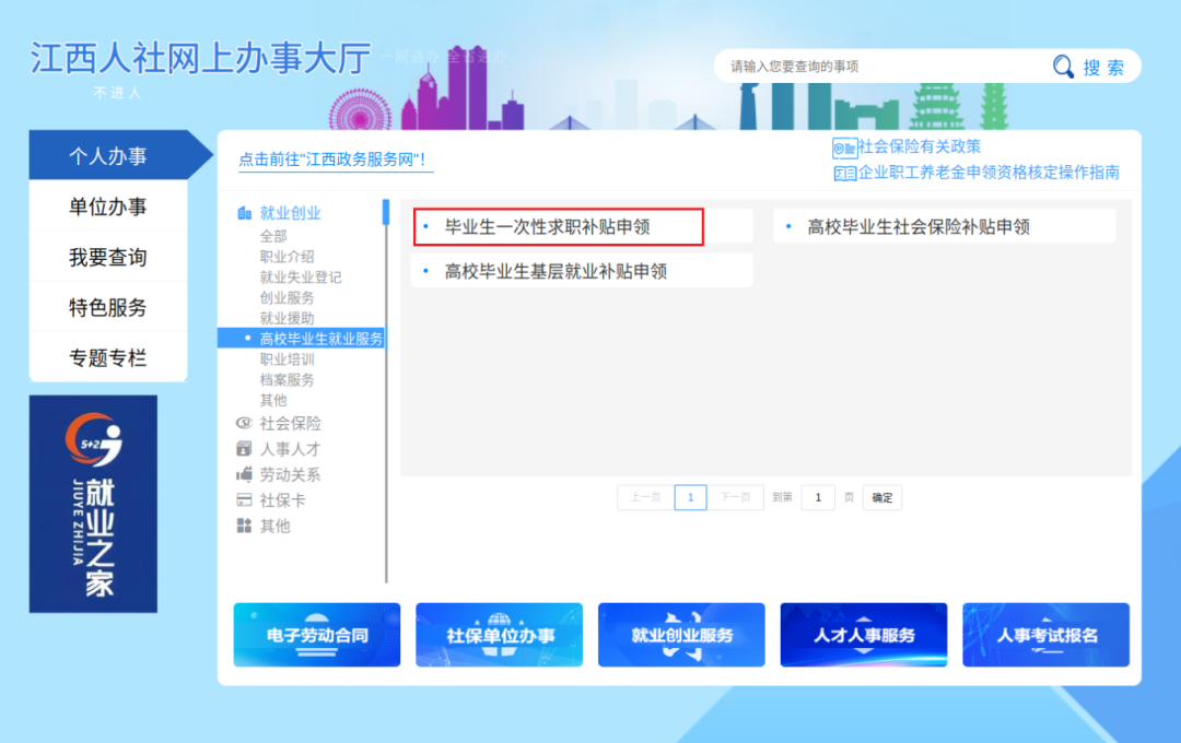 进入江西省人力资源和社会保障厅官方网站“江西人社网上办事大厅”