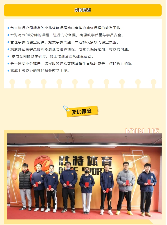 【体育校招】杜特体育招聘中考体育教练、少儿体能教练、篮球教练等