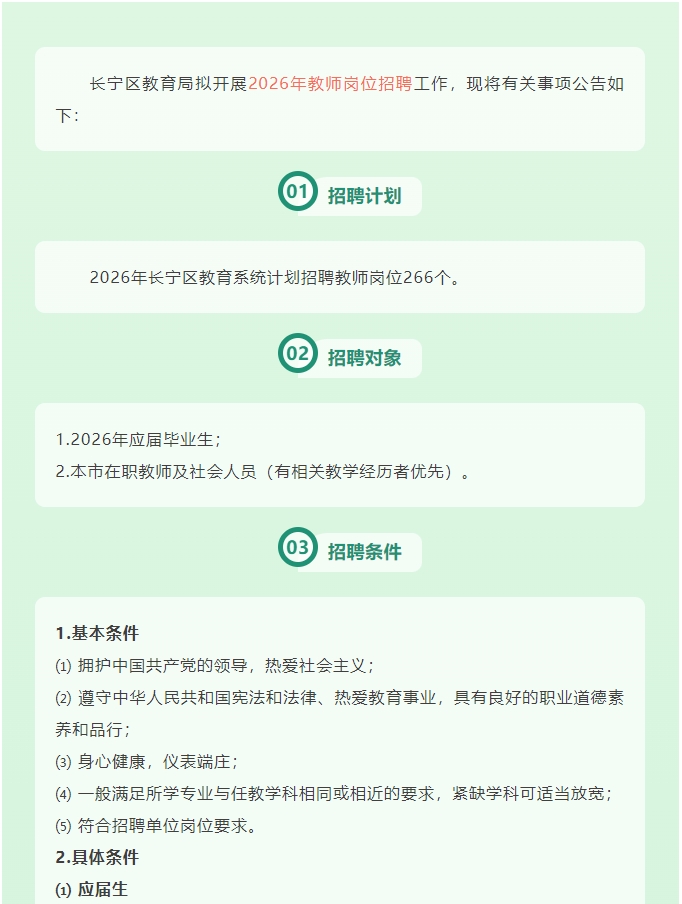 【舞蹈人才】2026年长宁区教育系统教师招聘公告