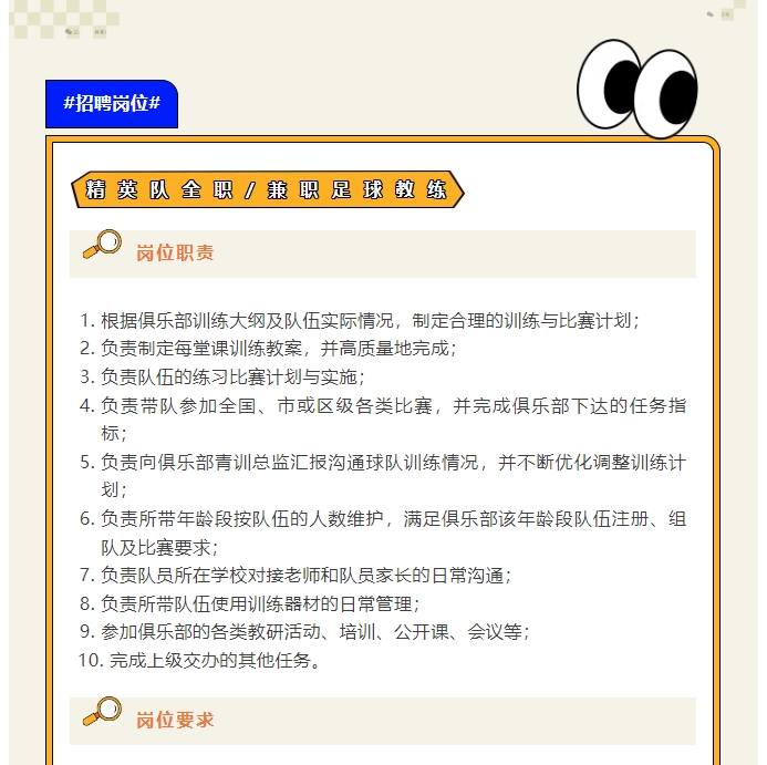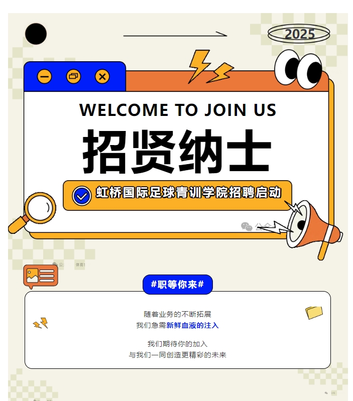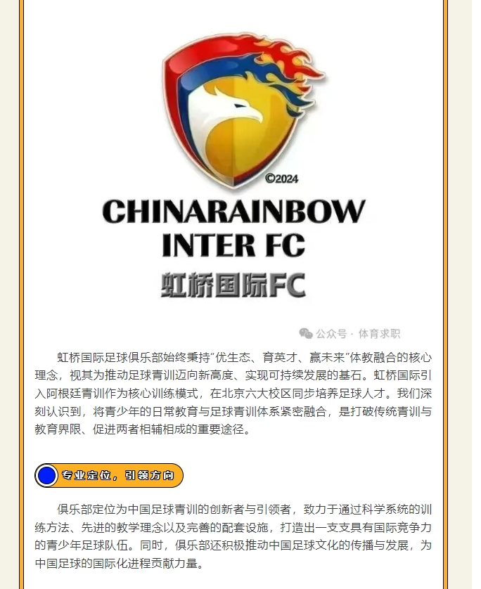 【体育招聘】虹桥国际足球青训学院全职/兼职教练员招聘中