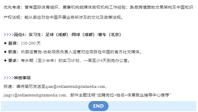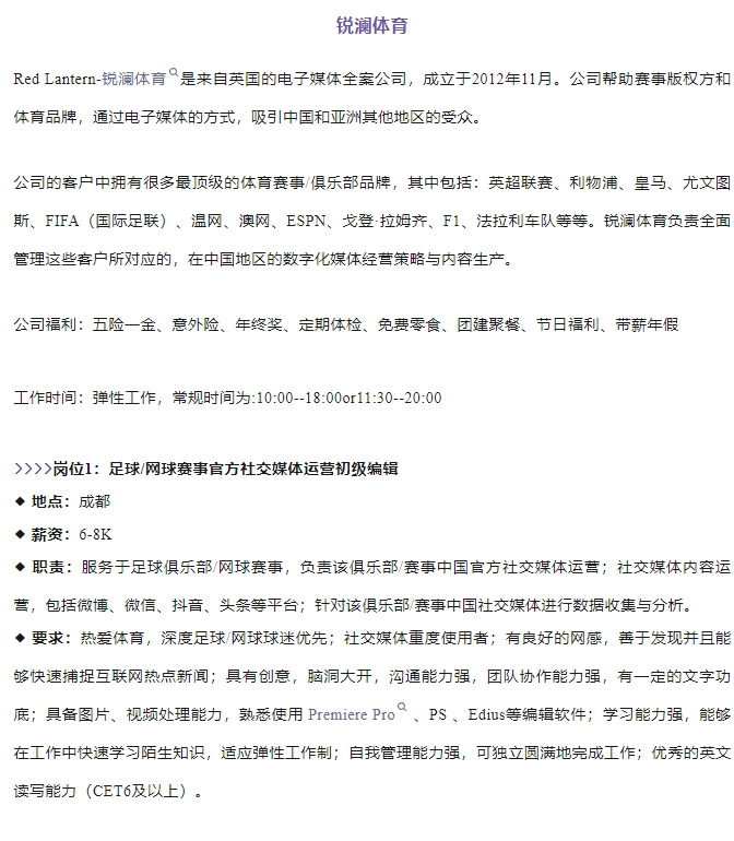 【体育招聘】Red Lantern锐澜体育招聘足球/网球新媒体、市场、商务人才