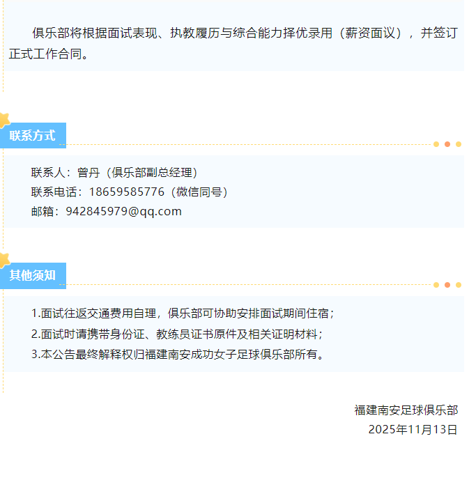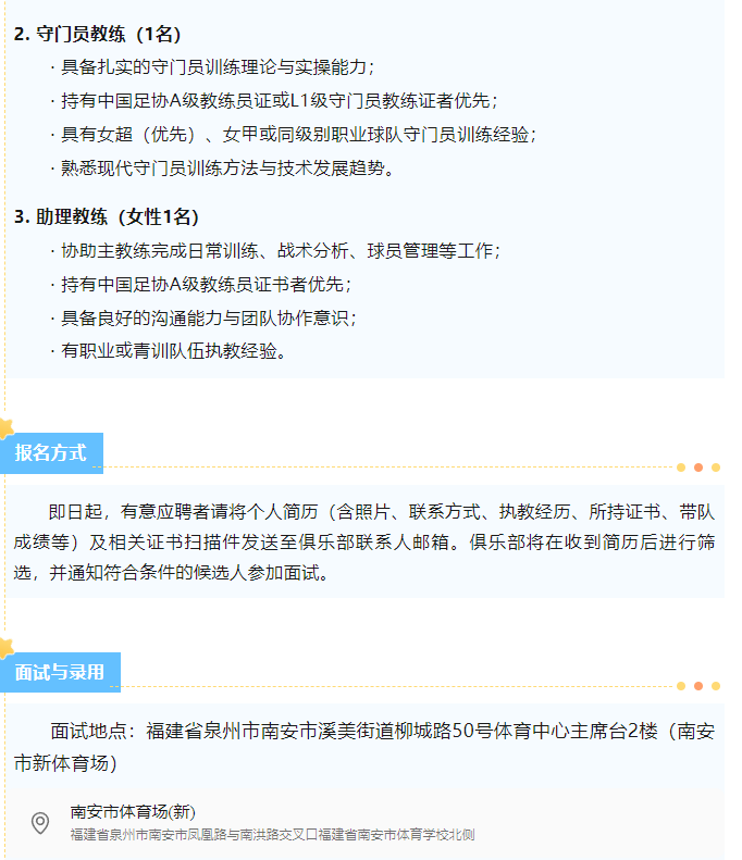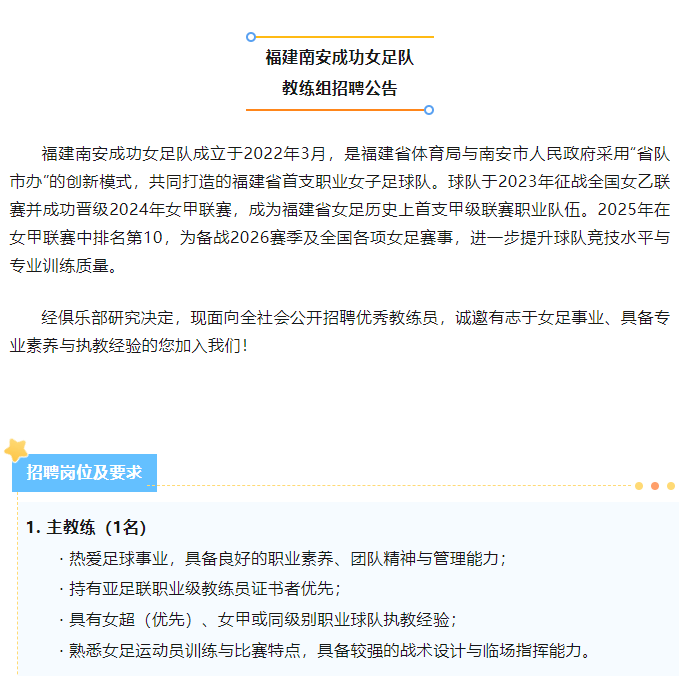 【体育招聘】福建南安成功女足公开招聘教练组!诚邀女足英才共赴新征程