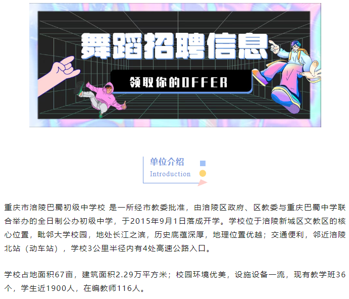 【舞蹈招聘】重庆涪陵巴蜀初级中学校招聘音乐舞蹈教师岗位
