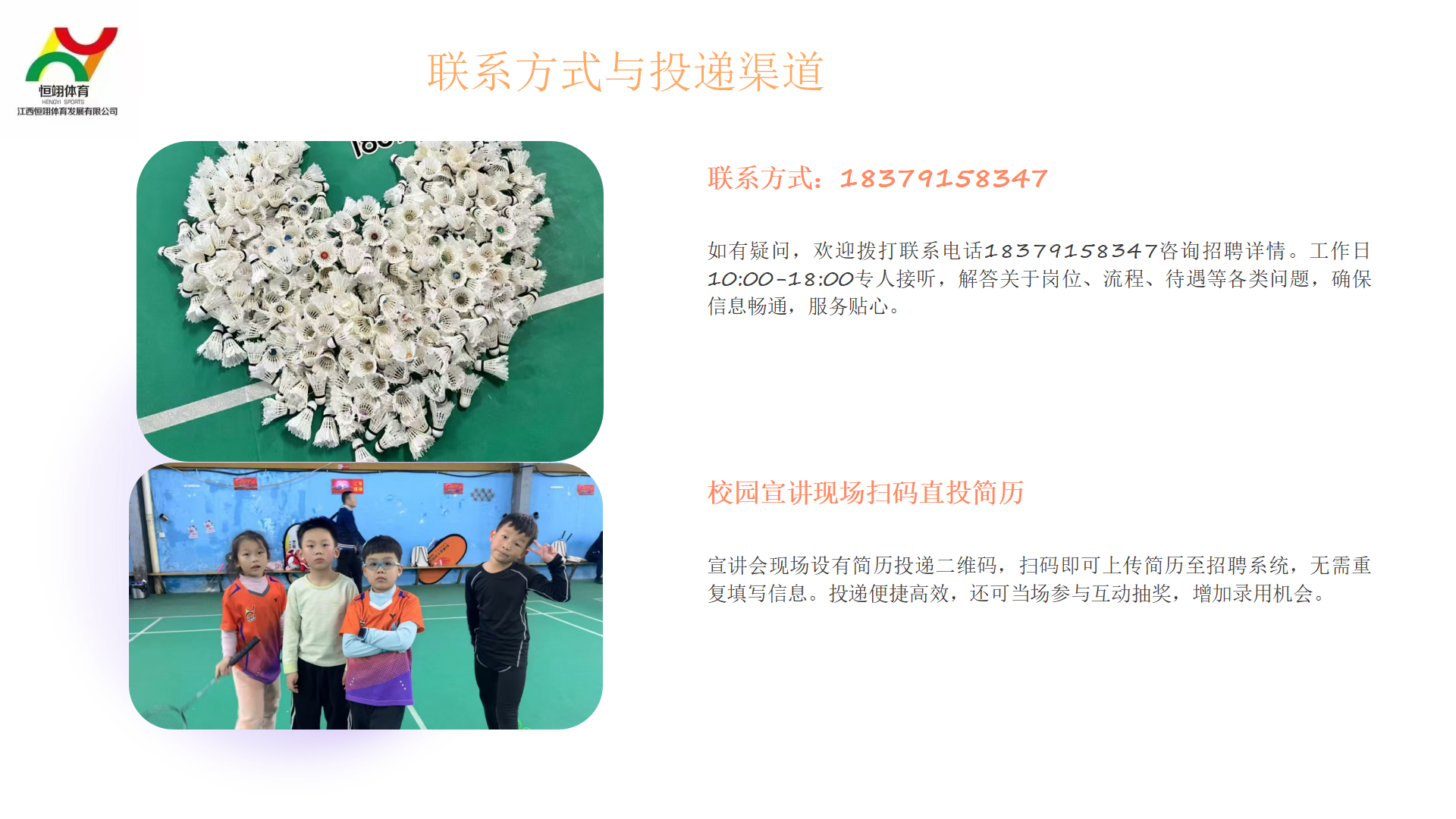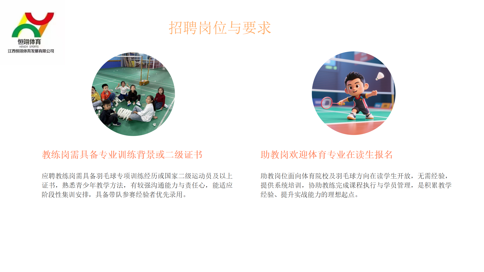 【体育招聘】南昌恒羽体育发展有限公司校招羽毛球教练--长期有效
