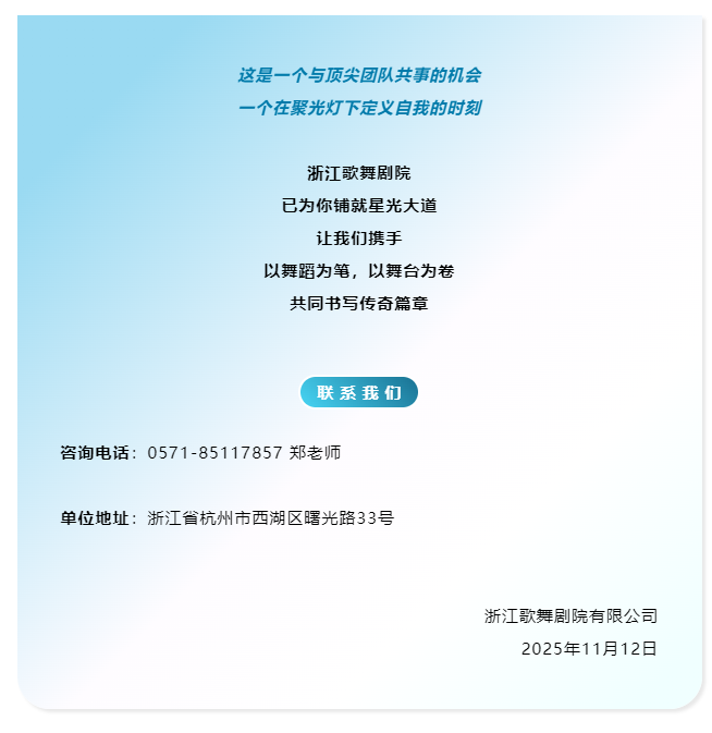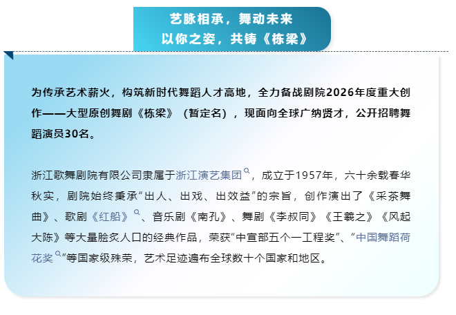 【舞蹈招聘】国有企业--浙江歌舞剧院招聘30人公告