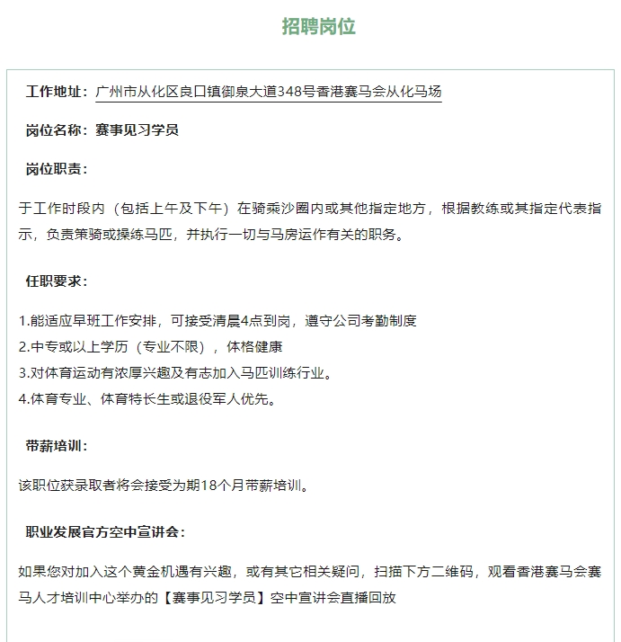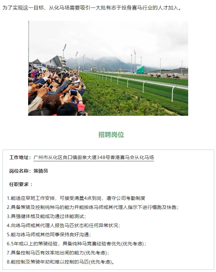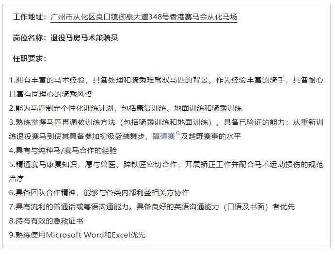 【体育招聘】香港赛马会招聘策骑员,赛事见习学员等多个岗位