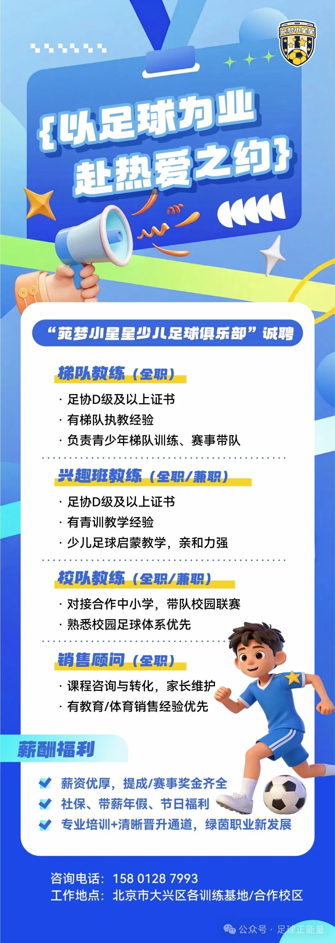 【体育招聘】梦苑小星星少儿足球俱乐部招聘足球教练、校队教练、销售、兴趣班教练