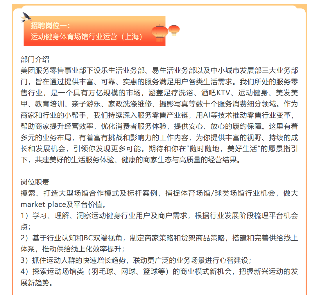 【企业招聘】美团2026年招聘体育类、场馆类、户外运动类岗位多人!