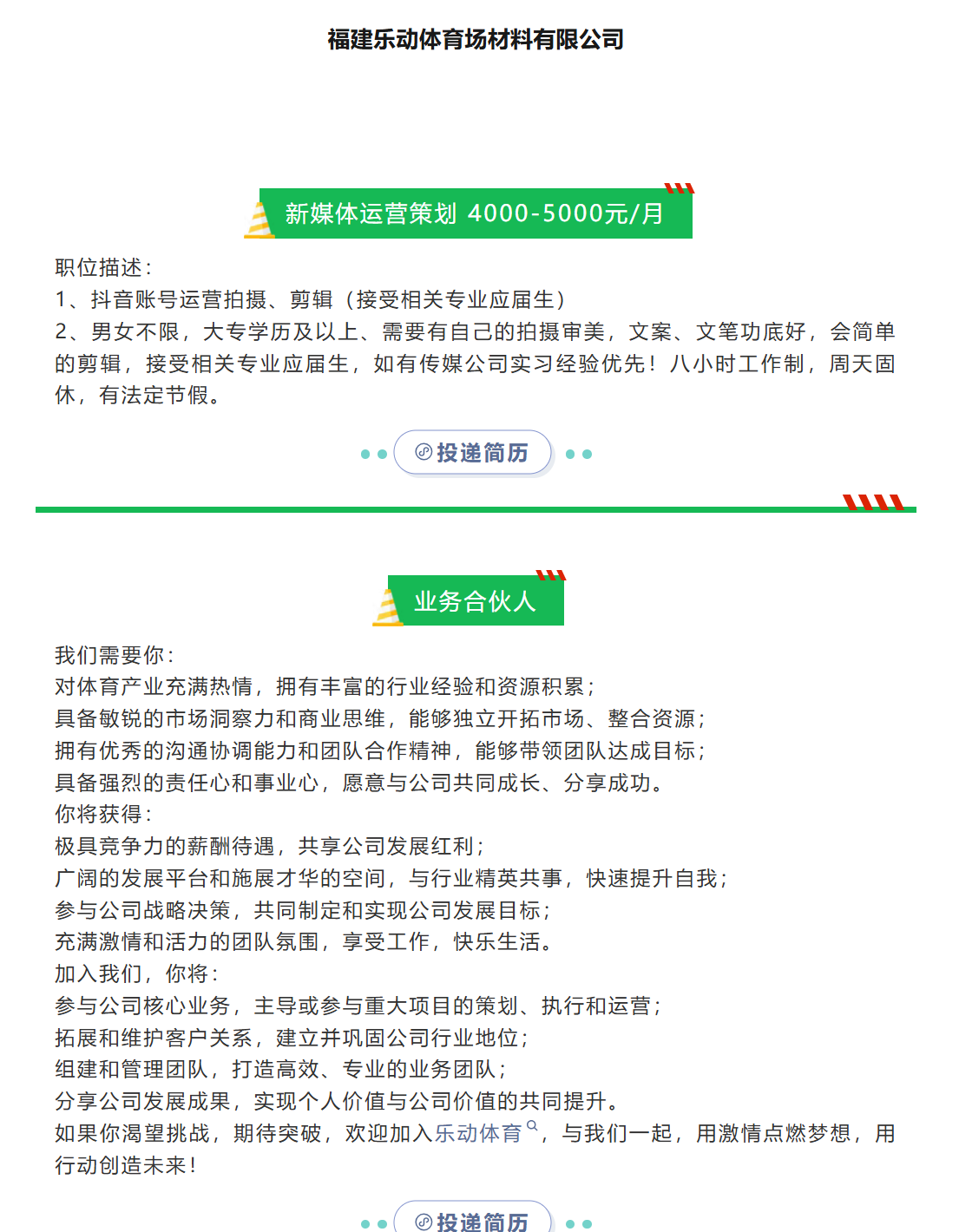 【体育招聘】乐动体育招聘新媒体运营策划、业务合伙人、 销售、总经理助理
