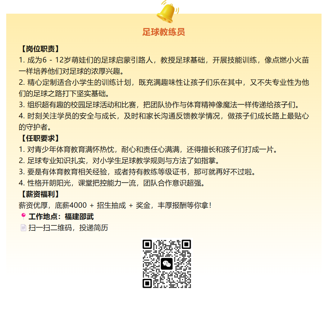 【体育招聘】福建邵武招聘足球教练员