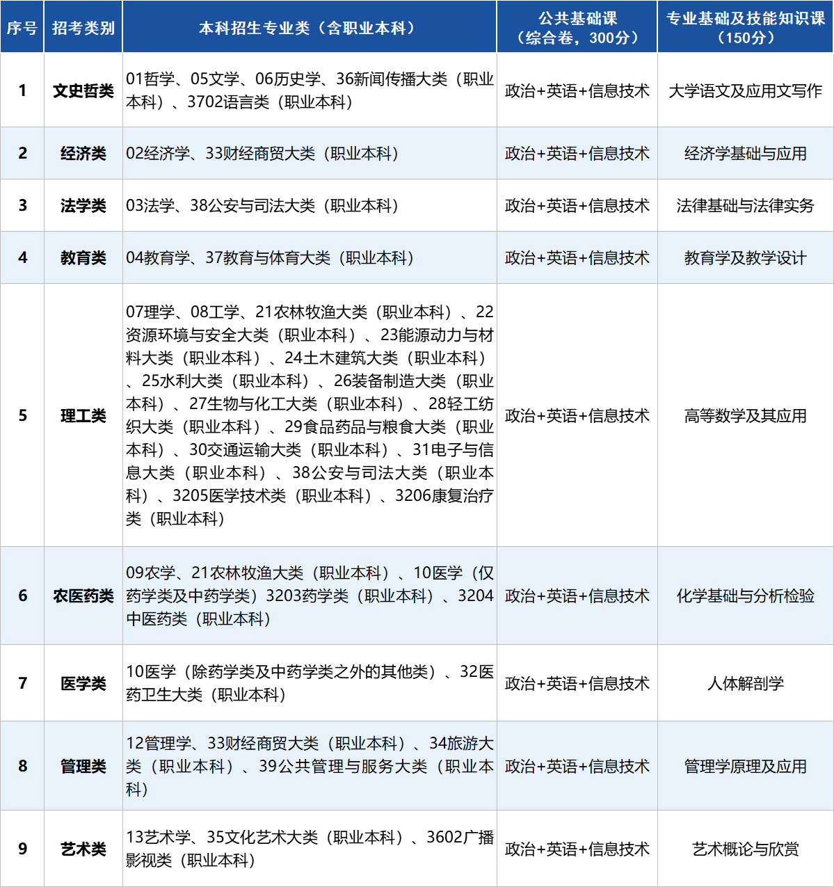 2026年普通高等学校专升本考试科目