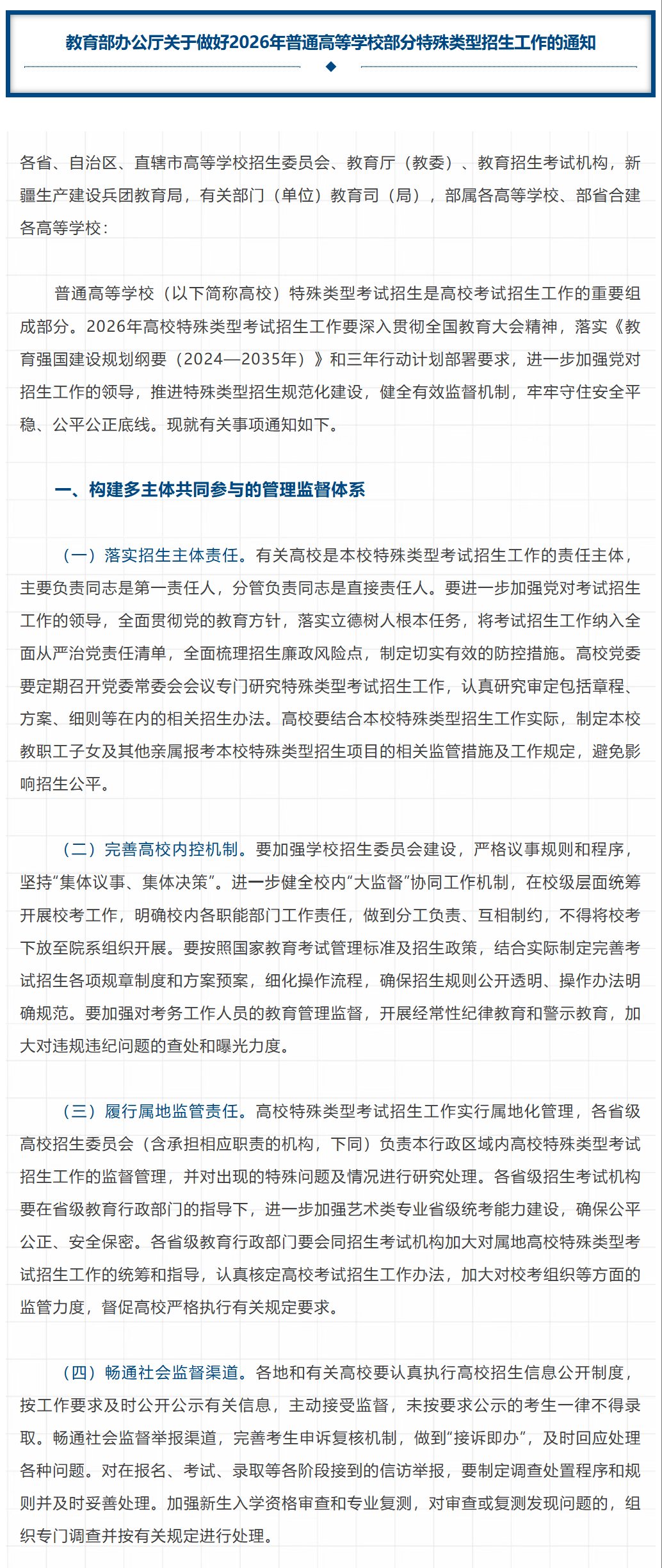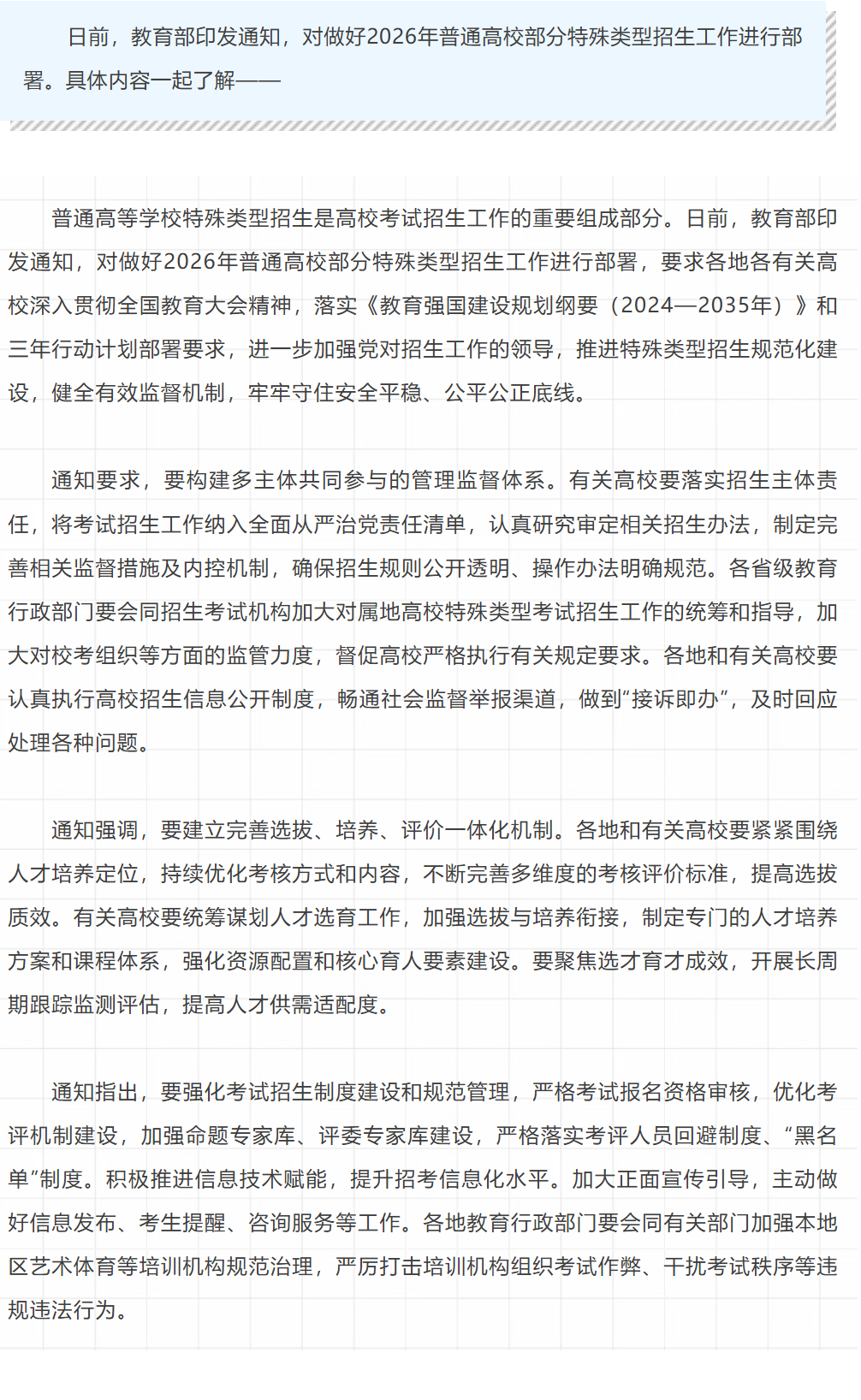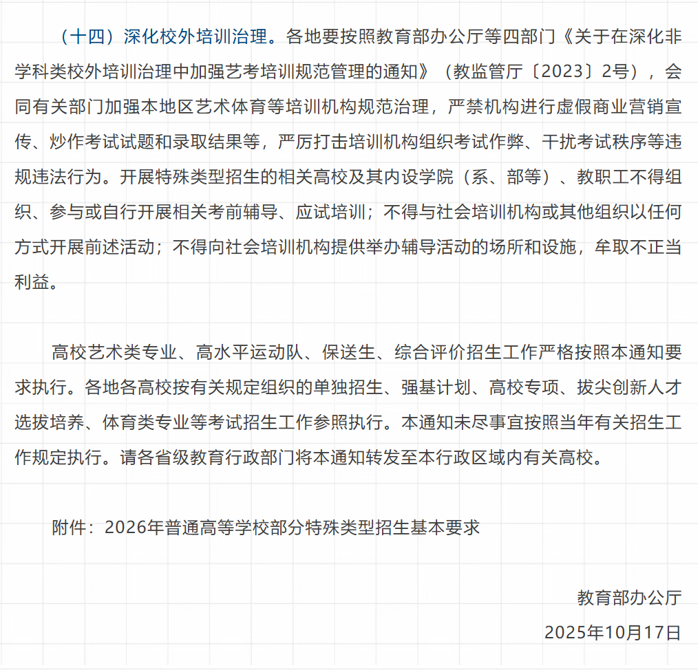 【招生信息】2026年普通高校部分特殊类型招生工作开启
