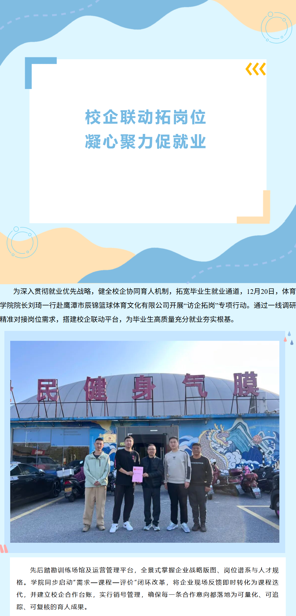 【访企拓岗】体育学院赴鹰潭市辰锦篮球体育文化有限公司开展访企拓岗专项行动