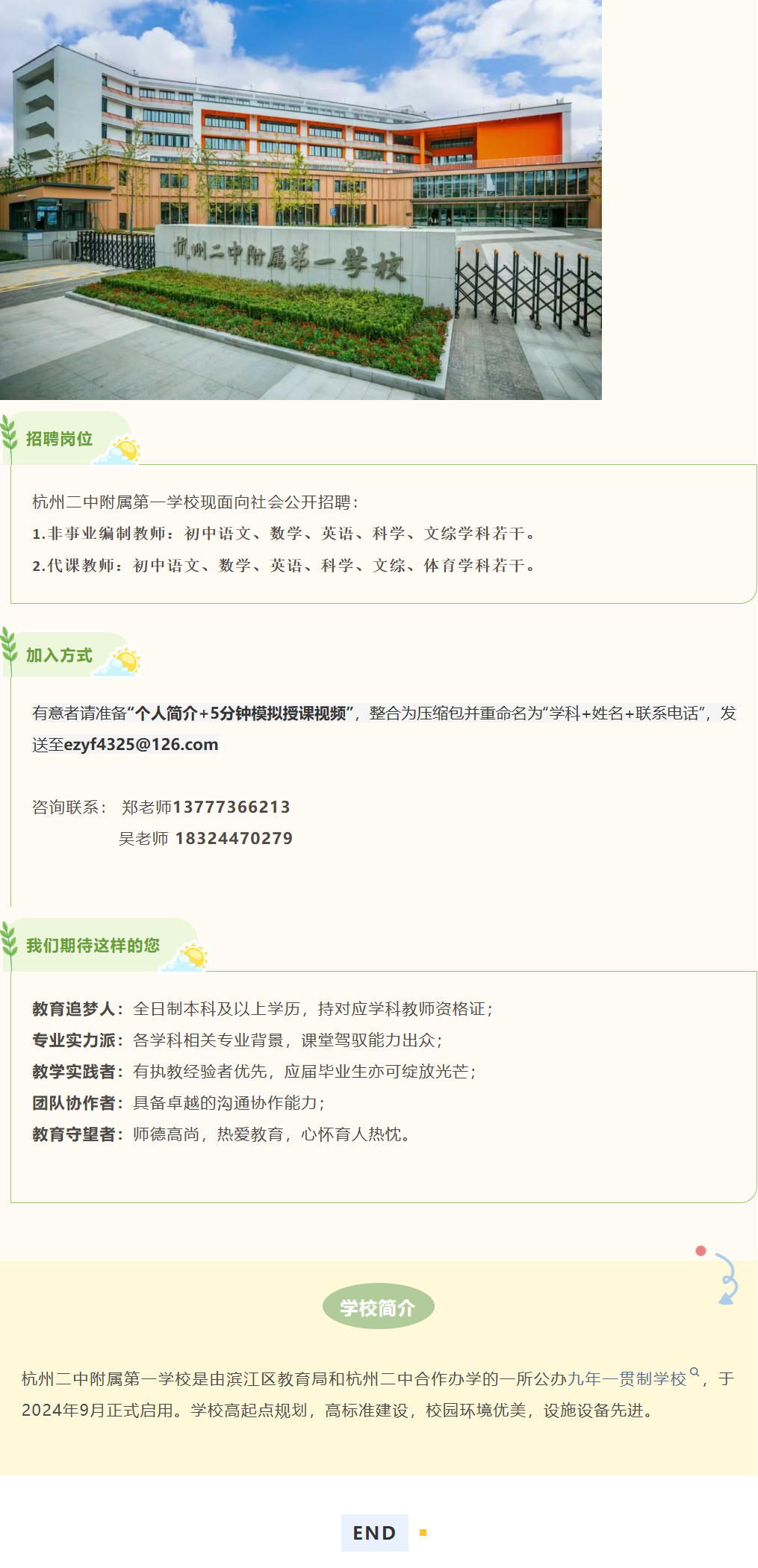 【体育招聘】杭州二中附属第一学校招聘体育教师