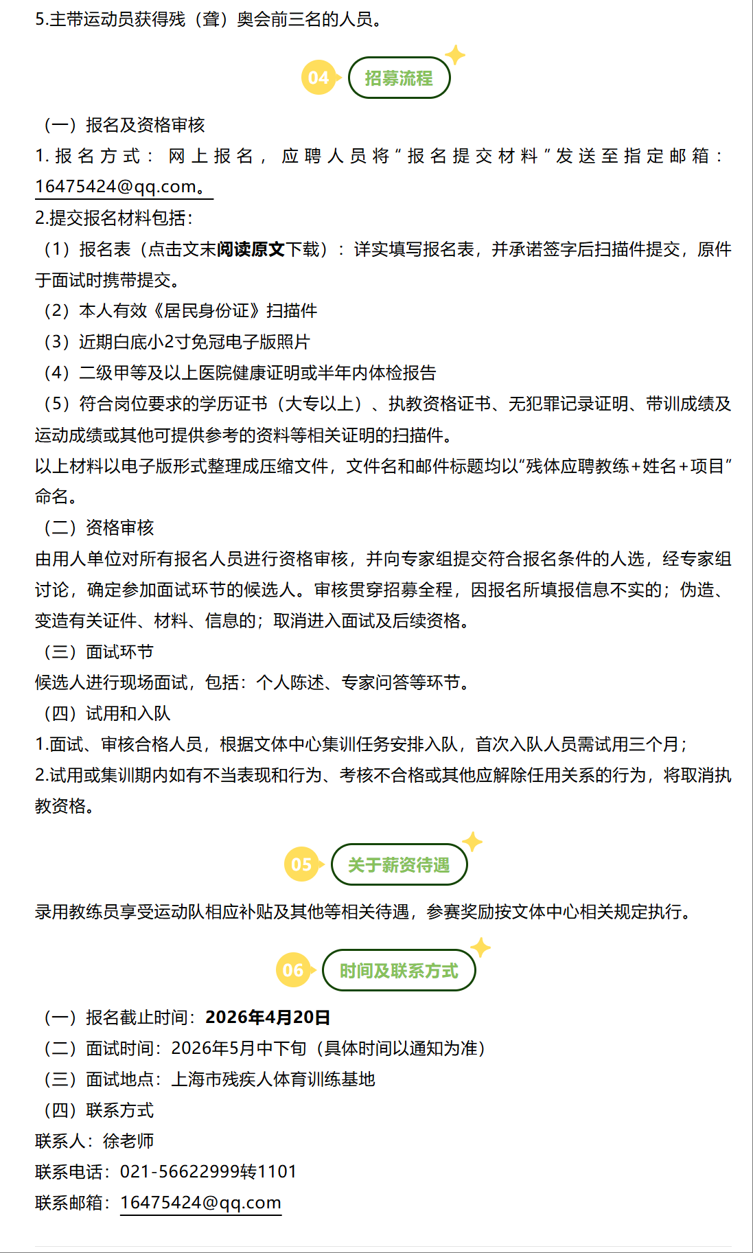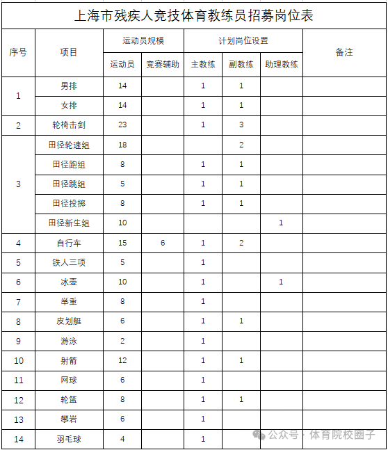 【体育招聘】上海市残疾人文化体育促进中心招募残疾人竞技体育教练员公告